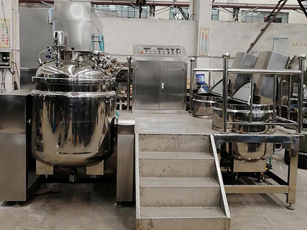 攪拌形式——主鍋為框式攪拌加均質(zhì)頭,油水鍋有錨式攪拌、分散盤(pán)以及漿葉式攪拌等。