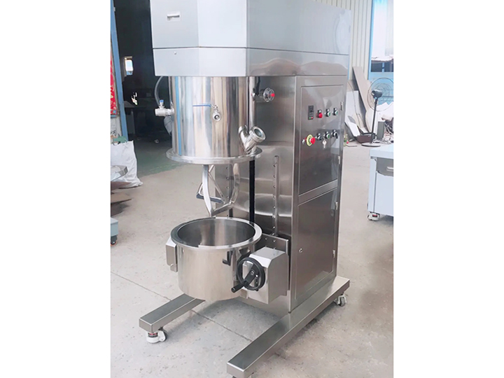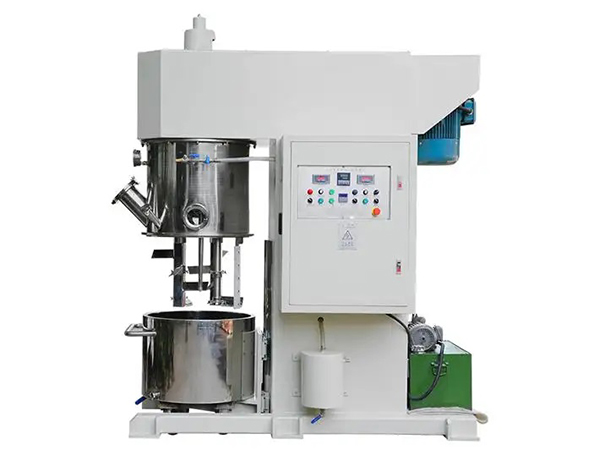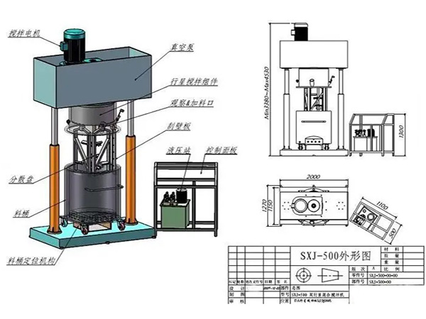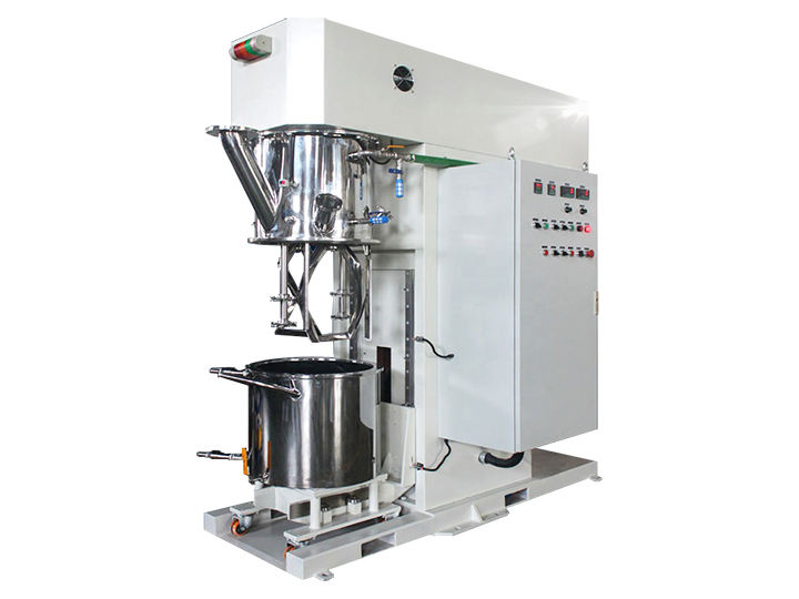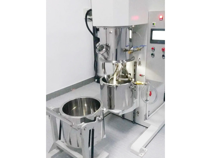 雙行星混合攪拌機是一種對多種液體、粉體進行混合攪拌、溶解、分散、均質的攪拌設備,分為減速電機、封蓋、行星架,高速、低速、活動刮板三軸,刮壁器、料桶、雙柱液壓升降系統、真空系統以及機架等構成。雙行星混合攪拌機能在真空下工作,可不斷的排出水分和其他的揮發物,因此,可作為脫氣釜使用。料桶可根據需要采用油、水循環加熱或冷卻;也可使用蒸汽加熱。加熱溫度通過控制面板上的溫度控制儀顯示。行星分散混合機(行星攪拌機)應用于高粘度電池、涂料、有機硅膠、油墨、染料、粘膠劑等。
