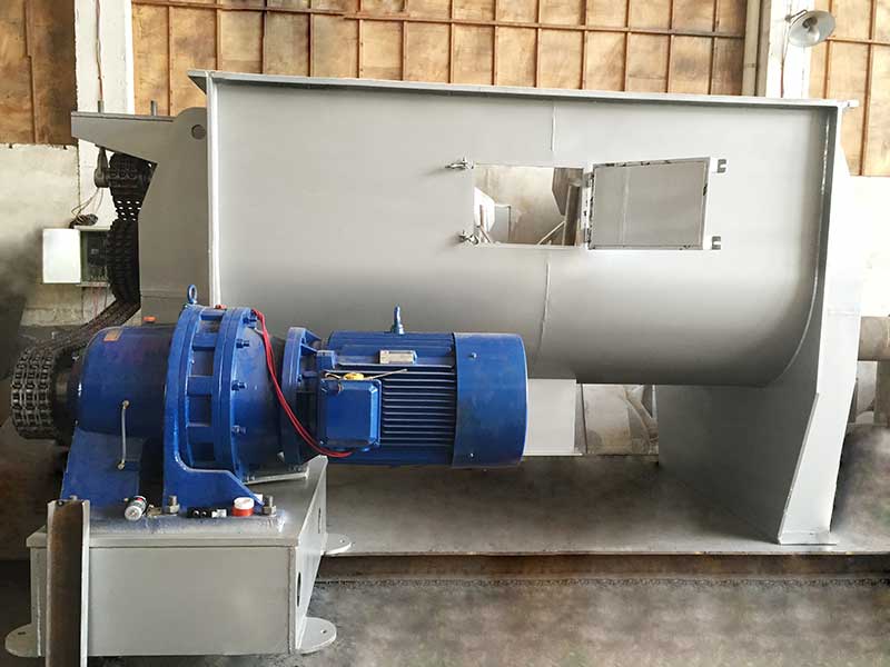 工作原理:無重力混合機裝載著兩根同時異向向外旋轉的平行槳葉軸,每根軸上搭載十字槳葉,在驅動裝置的同步作用下,兩根的十字槳葉軸的運行軌跡成相交關系,且錯位嚙合。驅動裝置驅使槳葉軸快速旋轉,旋轉的槳葉產生離心力,將物料有效拋灑至筒內上空部分,達到拋物線的高點后下落(拋物線的高點也稱為瞬間無重力狀態),物料再受槳葉的驅趕,在筒體內往復循環混合,并受雙軸的嚙合空間混合、剪切、分離,致使物料快速混合均勻。